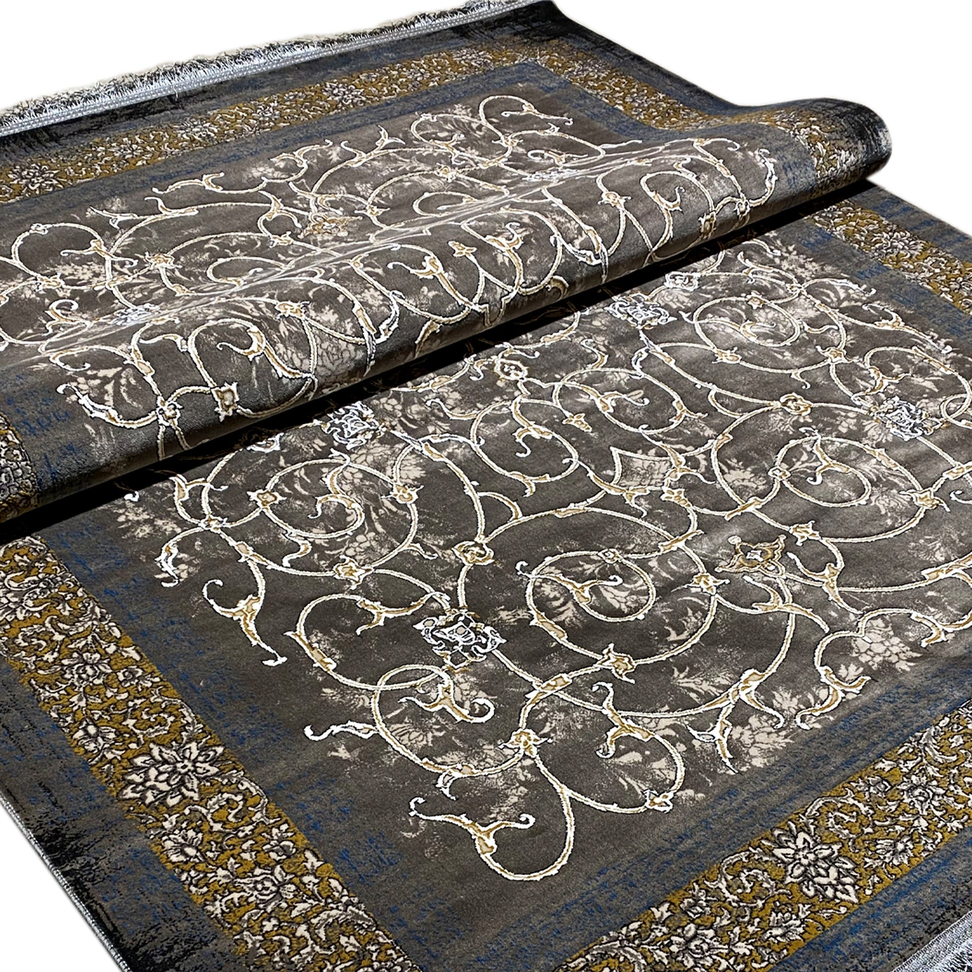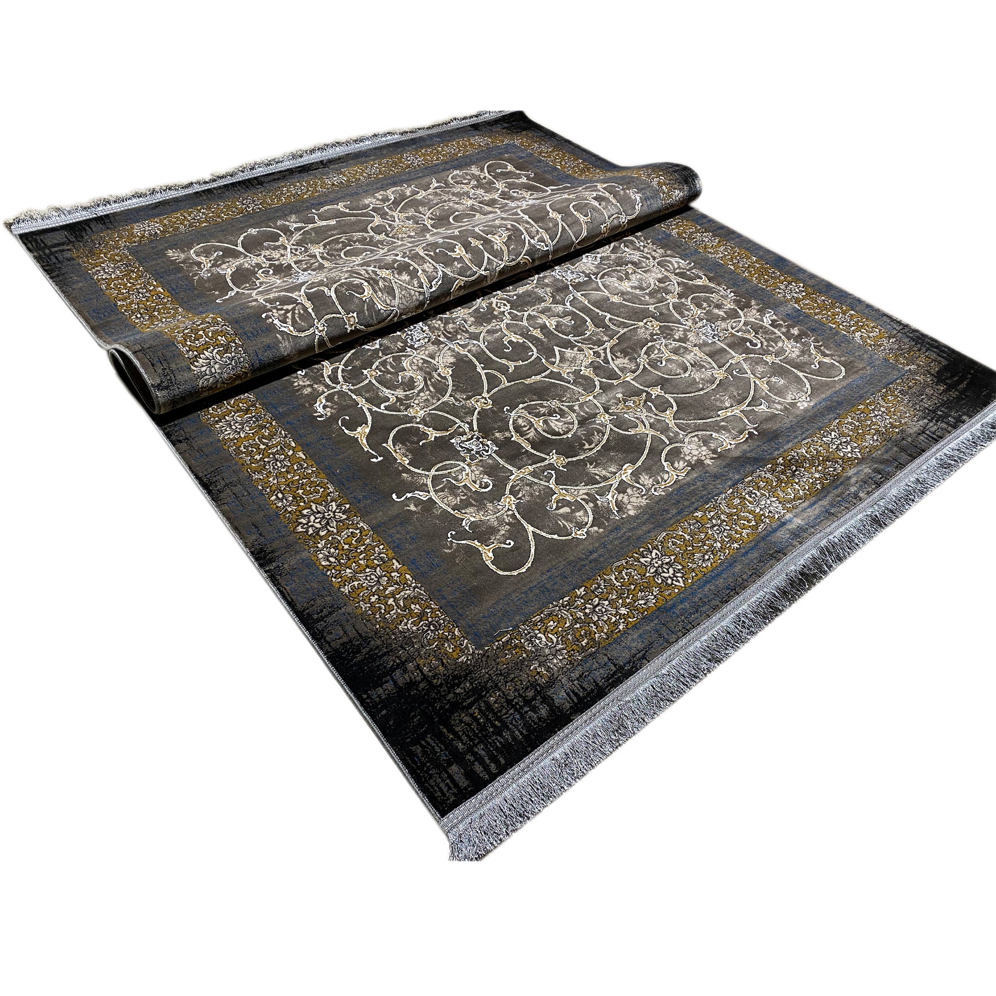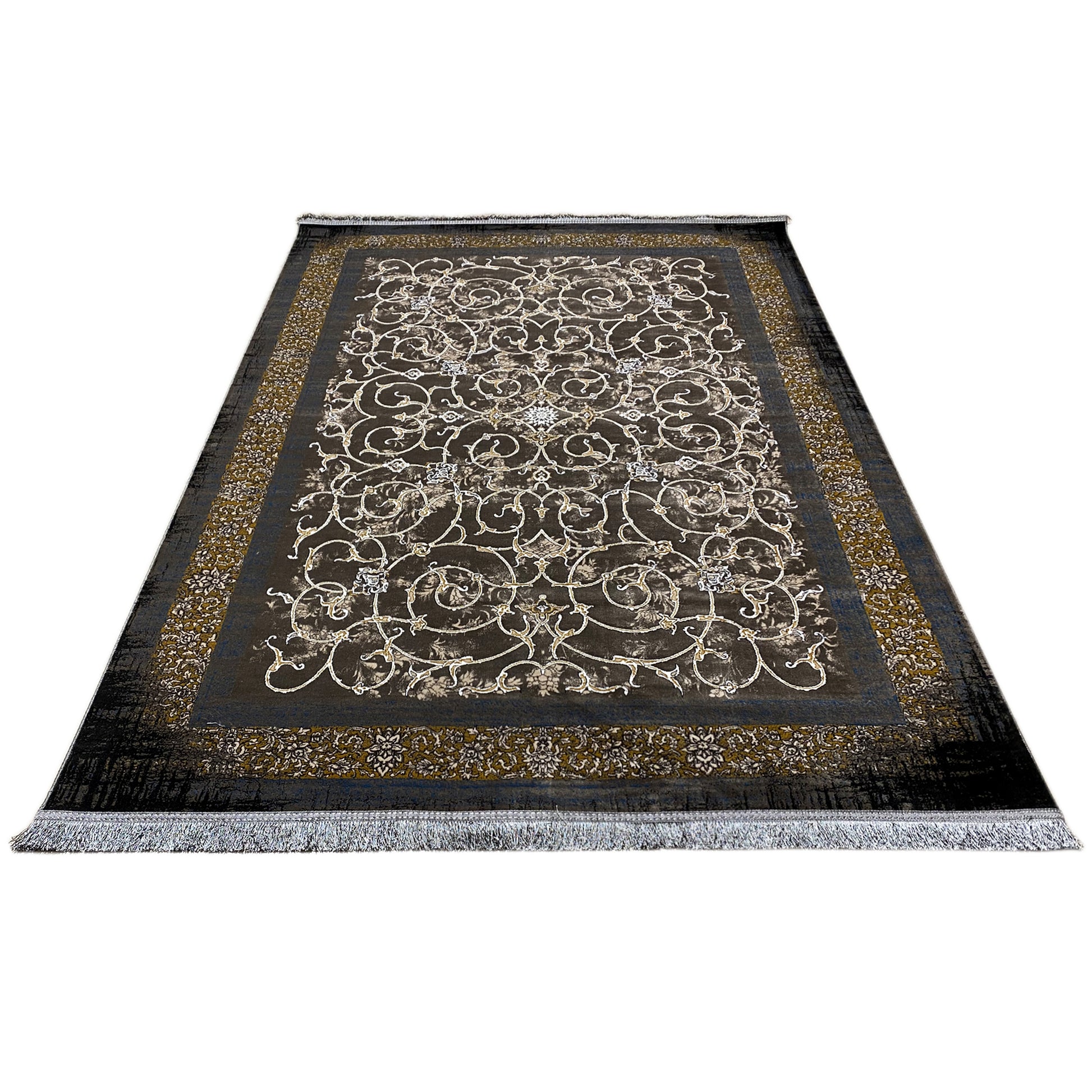Give your home a luxurious, timeless atmosphere with this beautiful classic rug. The stunning, continuous vine pattern in shimmering gold tones elegantly stands out against a dark, smoky background, creating a refined, faded vintage look. Made from 100% heat-treated acrylic, this soft and durable rug is ideal for high-traffic areas. The generous size of 170x240cm is perfect for adding a stylish accent to your living or dining room.