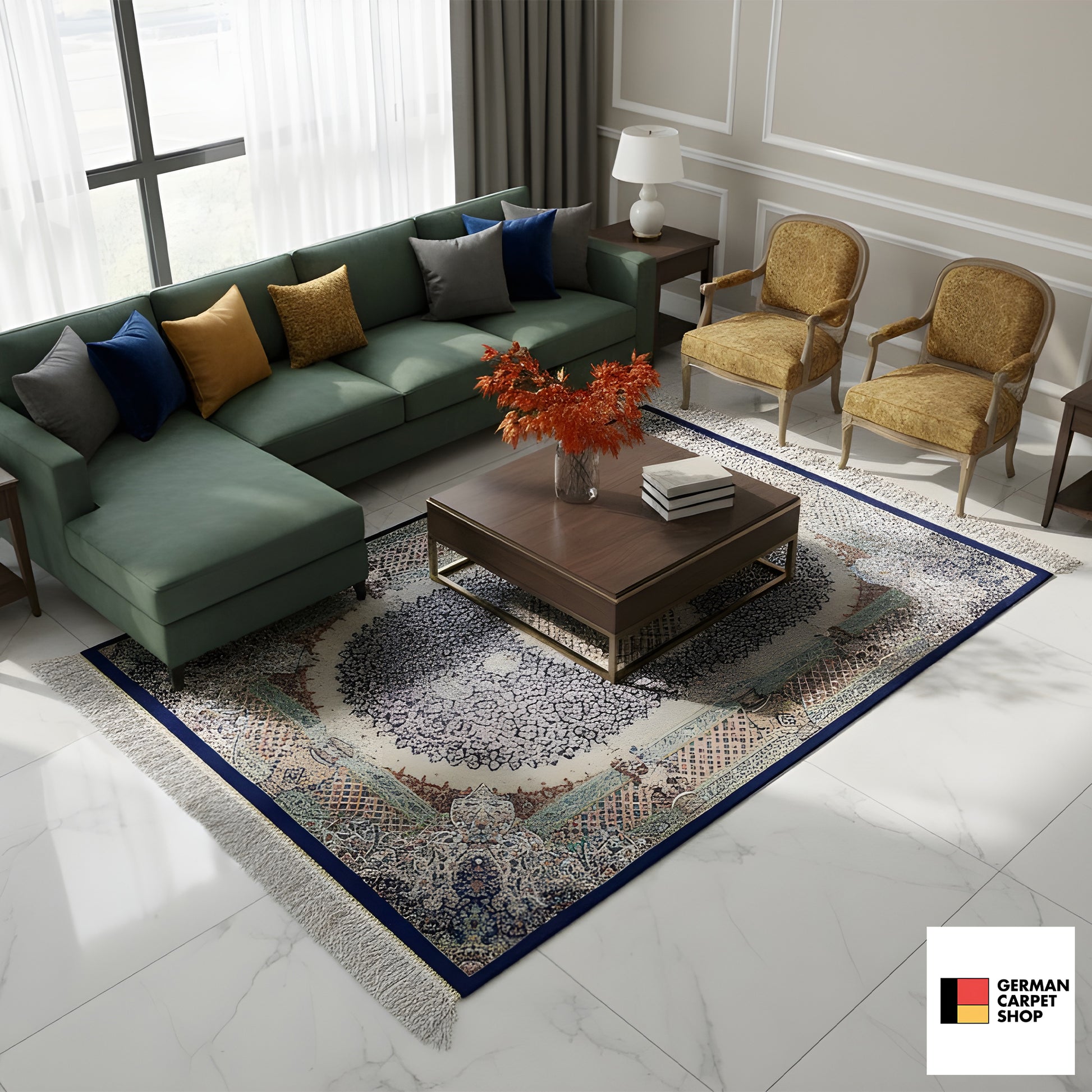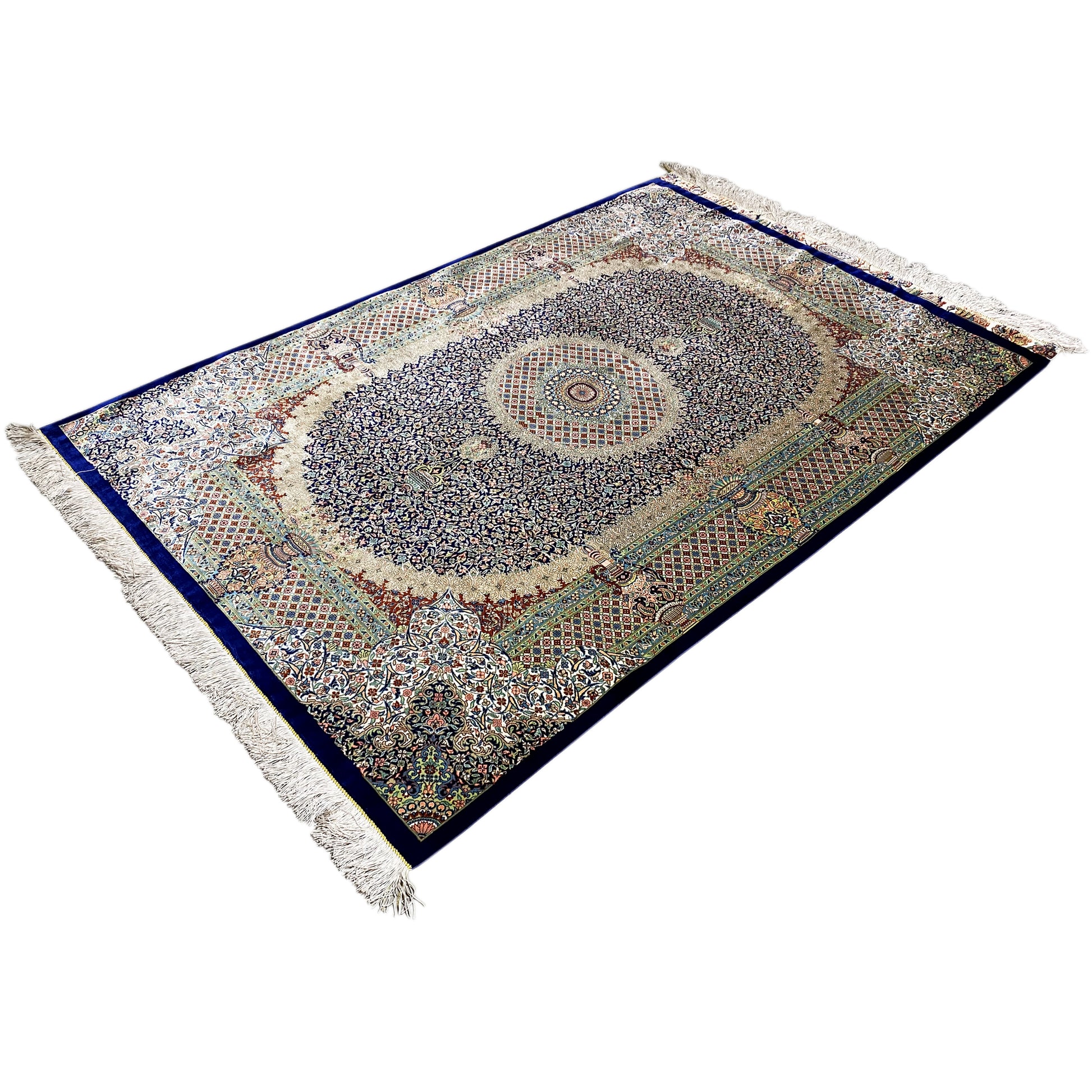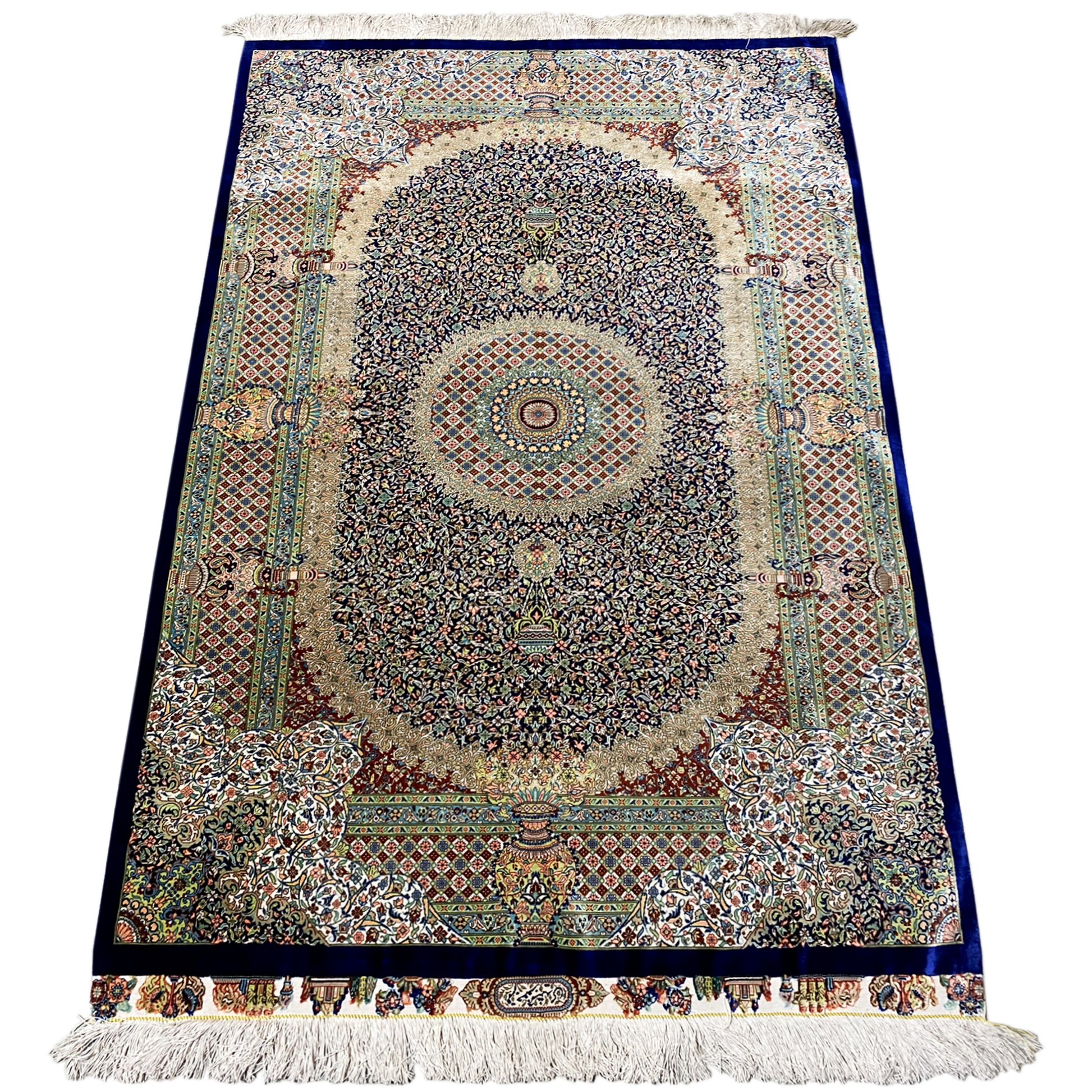 Ghom carpets are knotted in Central Persia in the city of Ghom. A silk carpet from Ghom impresses even collectors of Persian carpet art. The material of the carpets is silk, which makes them thin and dense. They are among the finest and most noble Persian carpets and captivate with their unique shine.