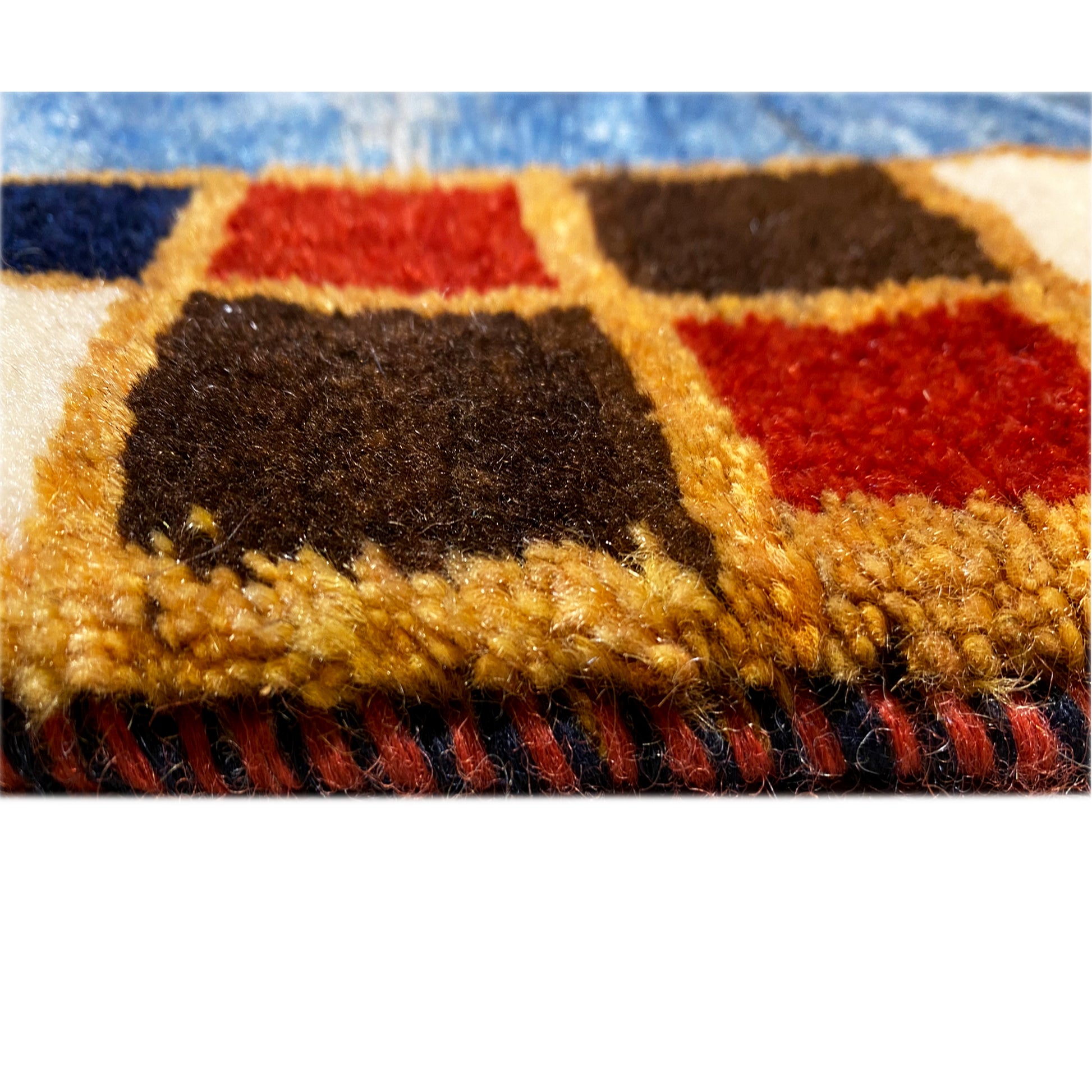 This unique lion Gabbeh rug, hand-knotted from hand-spun, plant-dyed wool, impresses with its traditional decorative style and a striking lion motif. Measuring 179x124cm, this blue rug is a powerful statement piece that adds character to any room and guarantees durability.