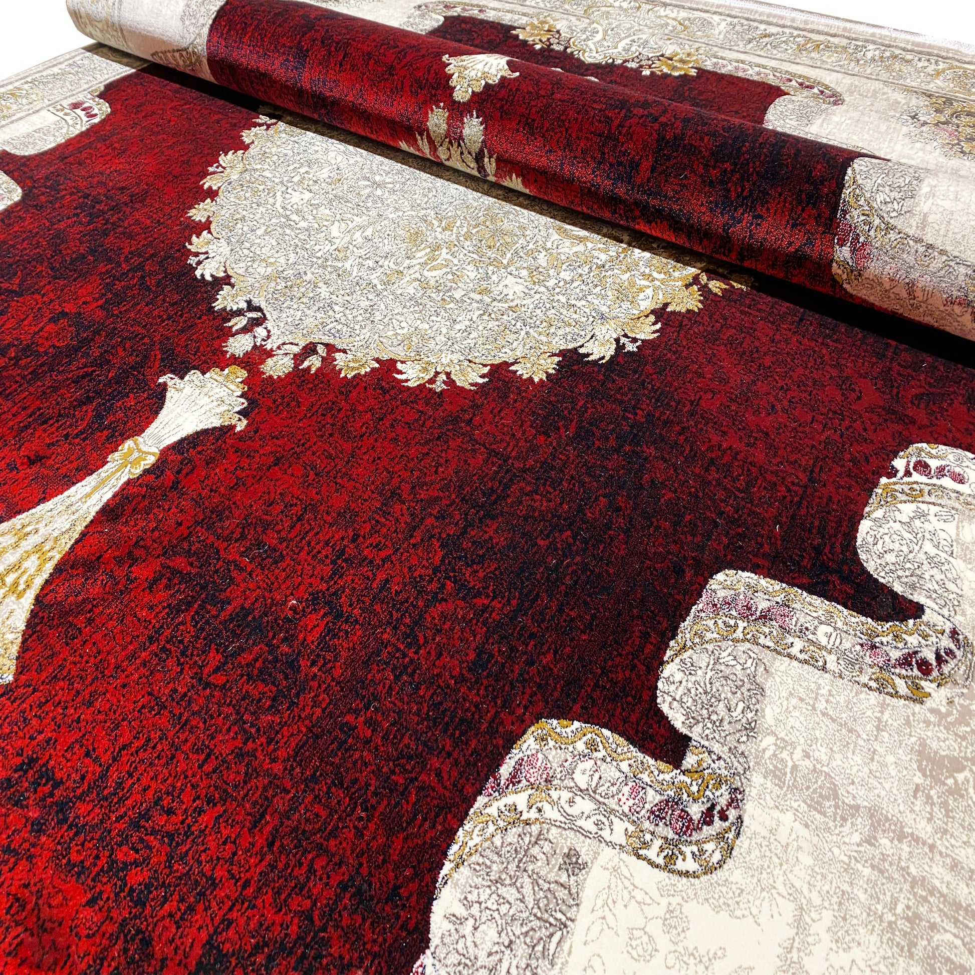 Transform your space with this striking and beautiful classic rug. The eye-catching red field and the artistic cream medallion create a luxurious focal point, surrounded by an intricately designed border with a unique shape. Made from 100% heat-set acrylic, this soft and durable rug is perfect for adding warmth and elegance to your living or dining area. The generous size of 170x240cm is ideal for defining a room and making a statement.