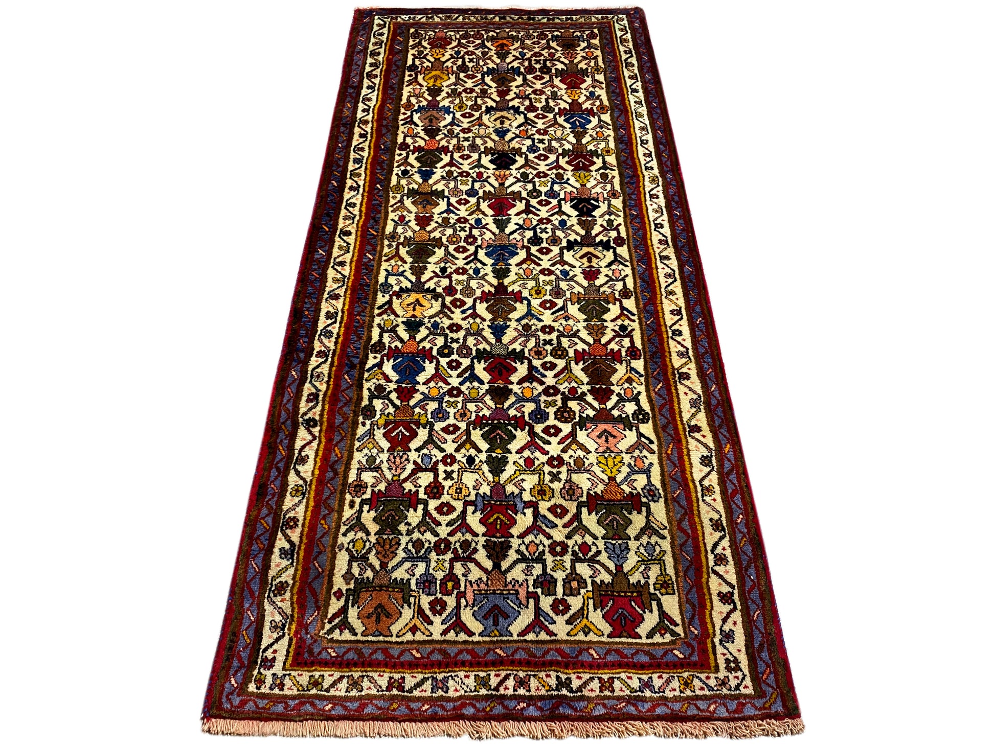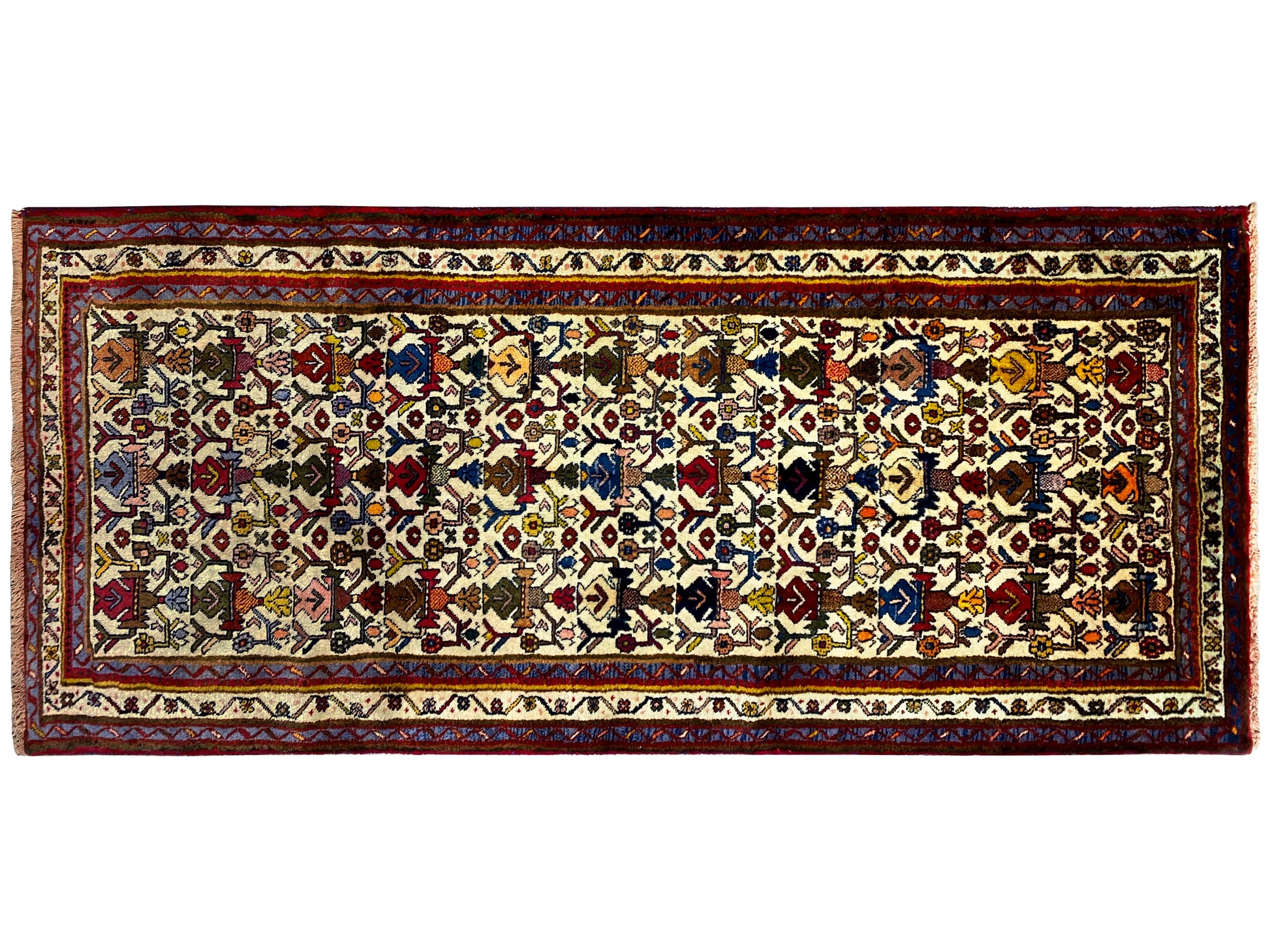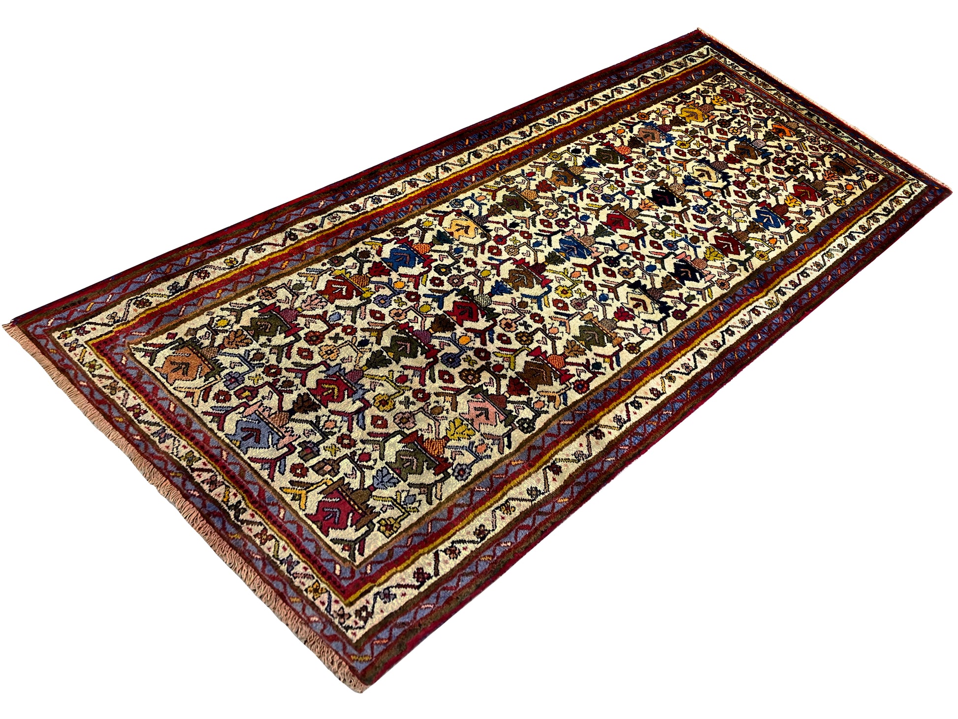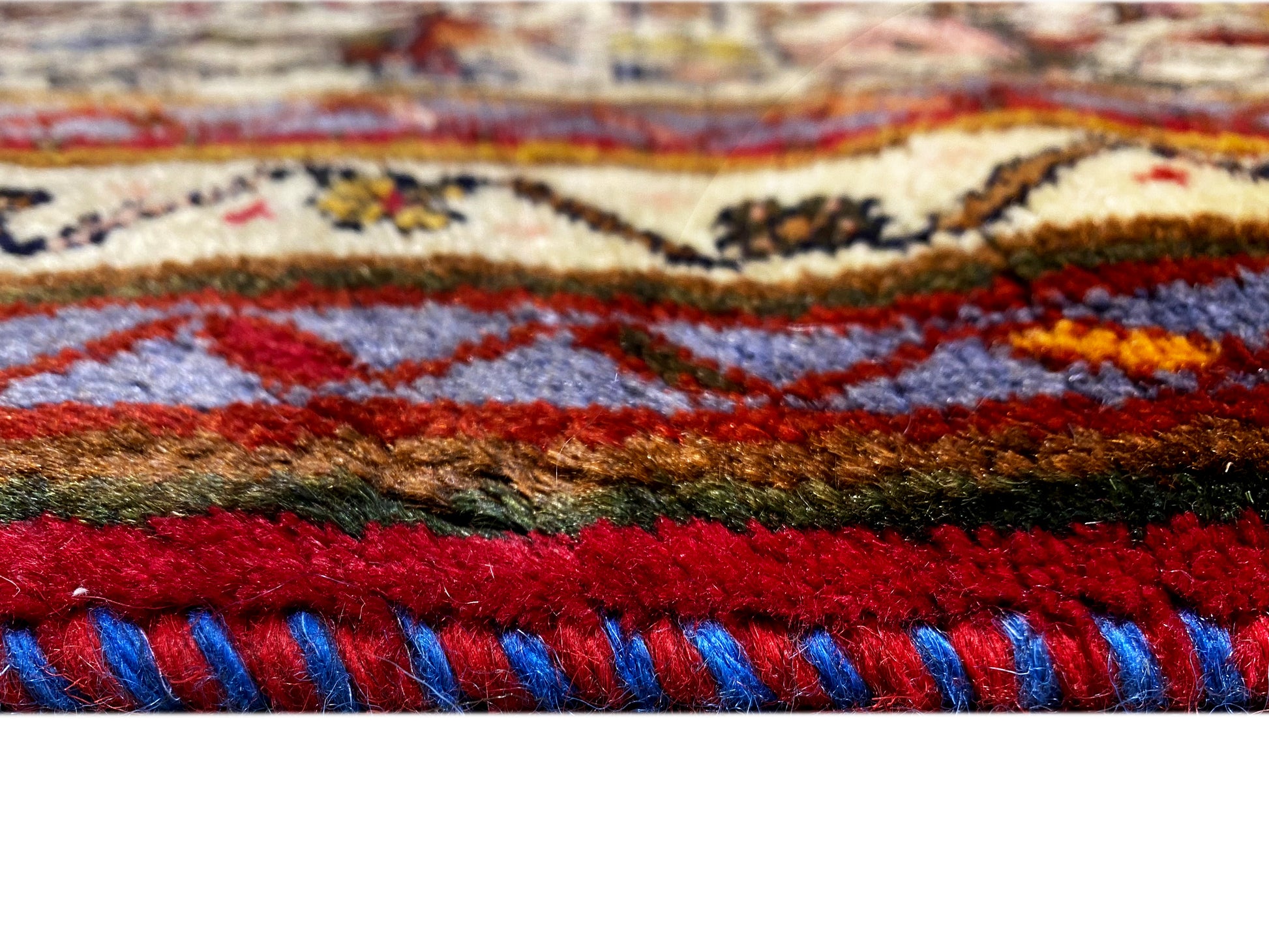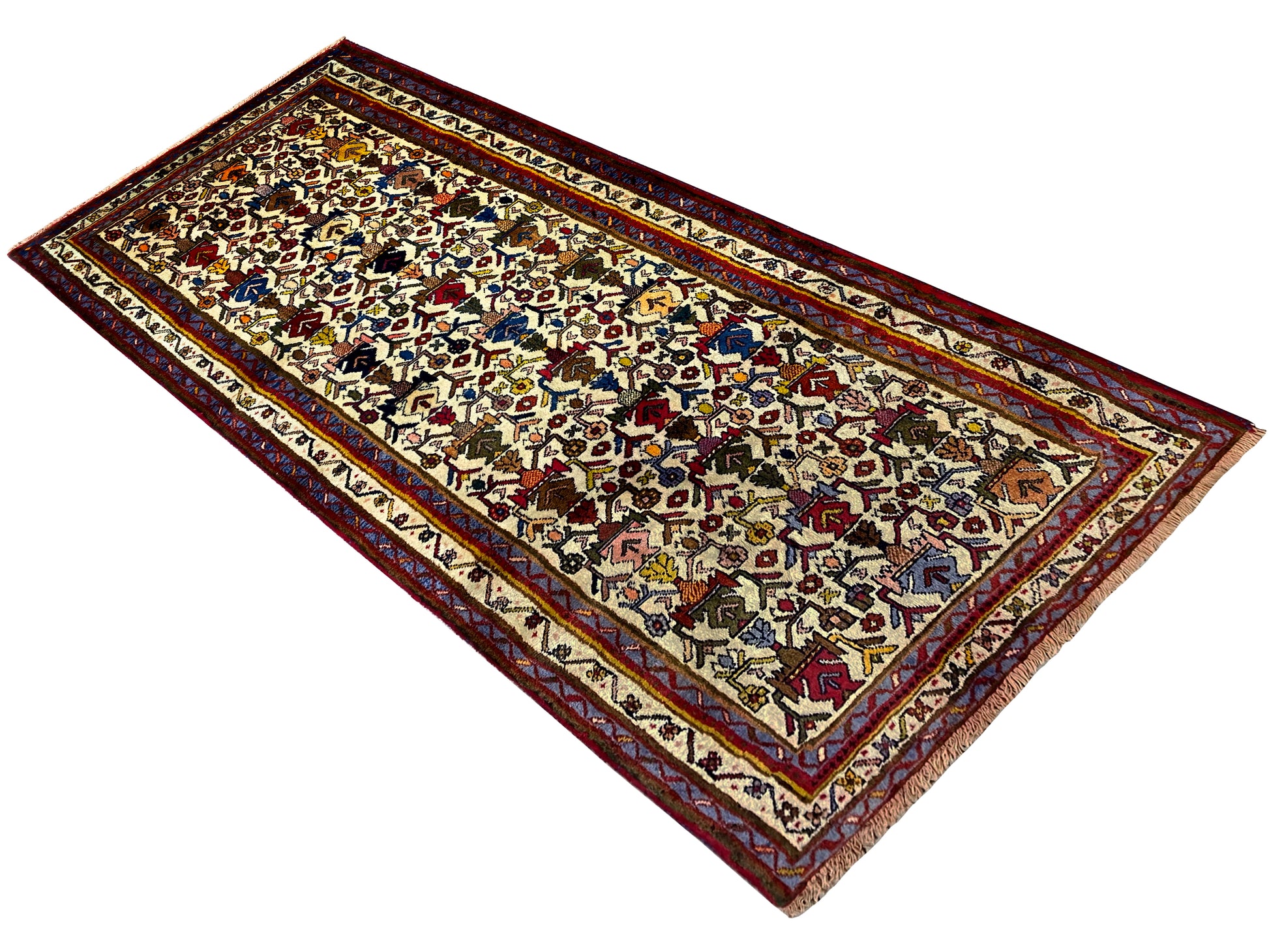Dieser handgeknüpfte Sirjan Läufer aus handgesponnener Wolle (225x92 cm) verbindet traditionelle persische Kunst mit moderner Wohnästhetik und eignet sich ideal für Wohn- und Flurbereiche im Boho- und Vintage-Décor; das dichte Knotenmuster von 160.000 Knoten/qm und das helle beige Grundfeld mit farbintensiven geometrischen Motiven verleihen jedem Raum Struktur, Wärme und Langlebigkeit, während das fein ausgearbeitete Muster den Teppich zu einem stilvollen Akzent für anspruchsvolle Interieurs macht.